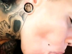 Tattoo-Schlampe lutscht die Morgenlatte!