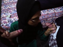 Arab hottie got two cocks in her mouth for a free room
